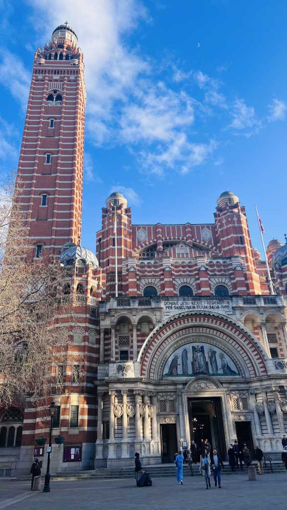 Ek olarak Buckingham Sarayı’na yürürseniz Westminster Katedrali de yakın mesafede yer alıyor. Burası biraz daha kıyıda köşede kalmış bir yapı; ama ben mimarisini çok sevdim. Gittiğimizde de ilginç bir dini tören ile karşılaştık.